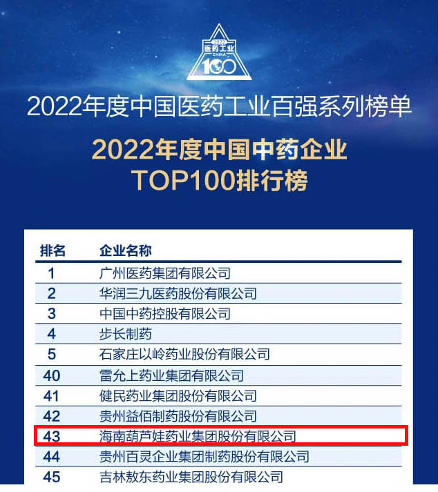 拉斯维加斯药业集团连续4年荣登“中国中药企业TOP100排行榜”,排名上升至第43位